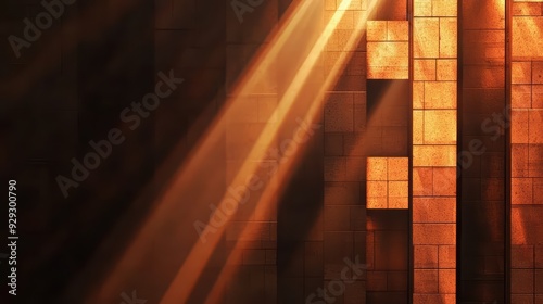 A dramatic interplay of light and shadow on textured surfaces, creating a warm and inviting ambiance in a modern setting.