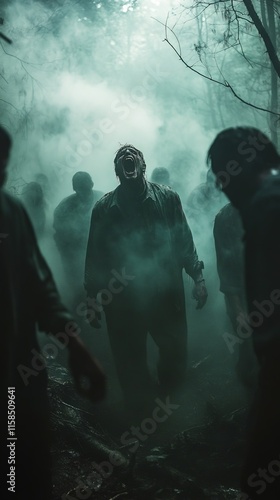 A dramatic moment capturing the terror of the men in the forest as one of them lets out a scream, echoing through the darkness.