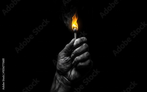 A dramatic portrayal of a hand striking a match, with the flame flickering to life
