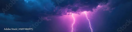 A dramatic storm cloudscape with a vivid, forked lightning bolt arcing across the frame, illuminating the dark sky Perfect for weather, nature, and power imagery , fierce, nature, sky