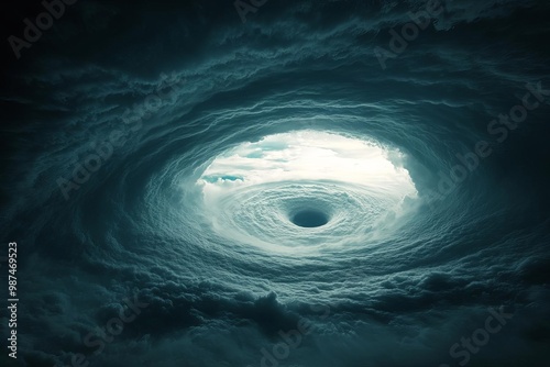 A dramatic view of a hurricane eye amidst swirling storm clouds.