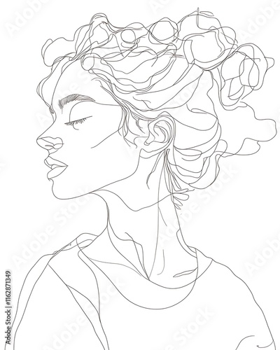 a drawing of a woman with a flower in her hair
