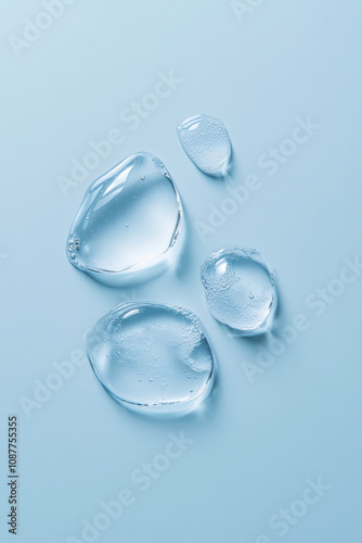 A Drop of Water Rests on a Light Blue Surface With Other Droplets Creating a Tranquil View