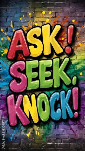 A dynamic and vibrant street art piece on a brick wall bubbly letters