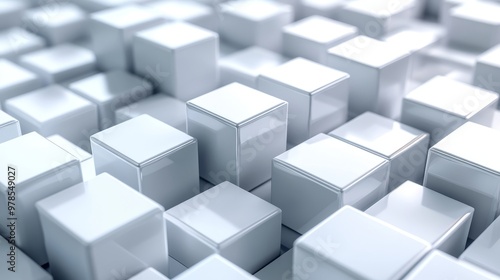 A dynamic arrangement of glossy white cubes creating a modern, abstract background, perfect for technology or design themes.