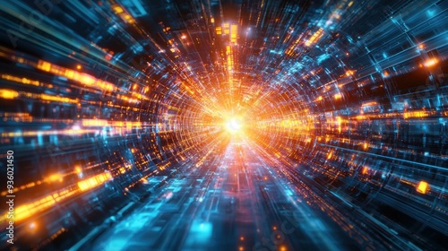 A dynamic burst of light showcases a vibrant digital tunnel, blending technology and energy in a stunning visual experience.
