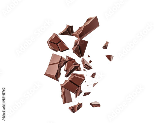 A dynamic display of broken chocolate pieces, emphasizing texture and form.