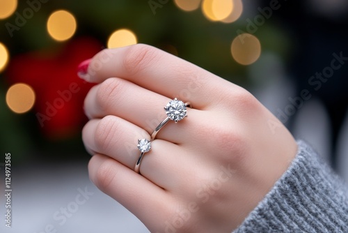A dynamic shot of a diamond engagement ring being slipped onto a hand during a proposal, with emotional expressions in the background