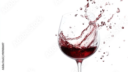 A dynamic splash of red wine in a crystal glass, creating an eye-catching visual perfect for beverage or celebration themes.