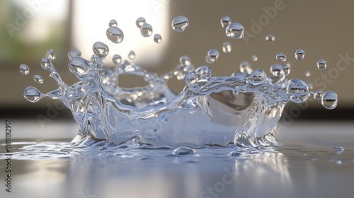 A dynamic splash of water captured mid-air with drops scattering in all directions.