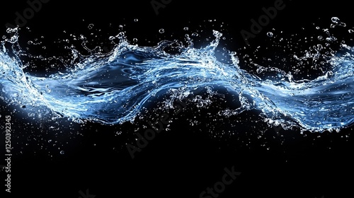 A dynamic splash of water, creating elegant waves against a black background, emphasizing fluid movement and the beauty of nature.