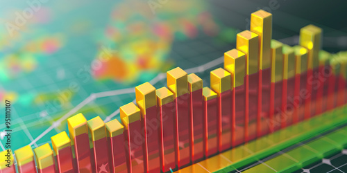 A dynamic stacked bar chart comparing sales performance across regions, using red, yellow, and green bars for visual impact.