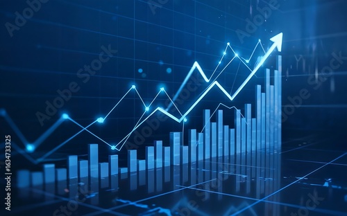 A dynamic stock market graph shows an upward trend, symbolizing financial growth and investment opportunity