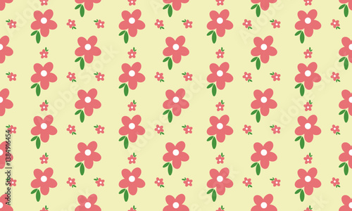 a fabric pattern composed hand drawn of pink flower with yellow background , design for fabric or various pattern printing works.