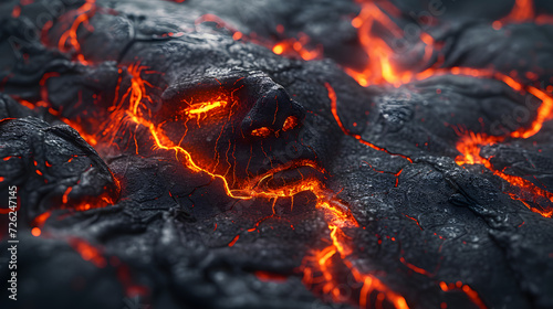 A face emerging from molten lava and rocks