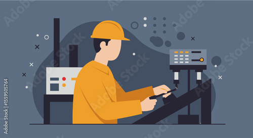 A factory worker in a hard hat operates machinery with precision, showcasing industrial production and skilled labor in a manufacturing setting.