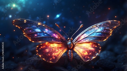 A faintly glowing galaxy in the shape of a butterfly.Cinematic theme, HDR, Vibrant