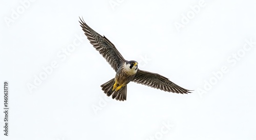 A falcon diving through the air, white background
