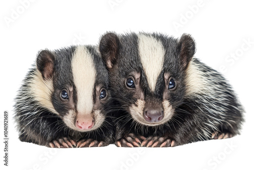 A family of skunks, isolate on white background, illustrating their loving interactions and diverse personalities. PNG