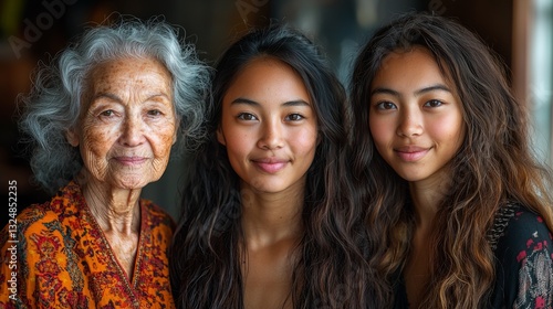 A family photo of multiple generations--grandmother, mother, and daughter