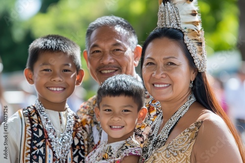 A family poses together in their traditional attire during a cultural celebration, representing unity, heritage, and the vital importance of family bonds across generations.