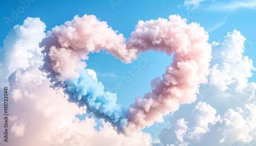 A fantastic scene with pastel colored heart clouds overlapping in the sky