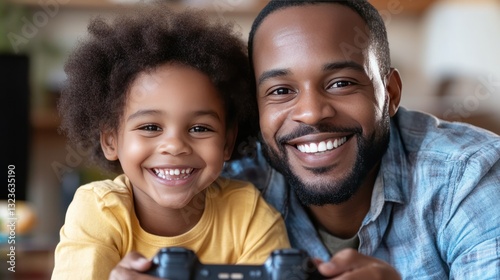 A father and child playing video games together, surrounded by snacks and laughter on Father’s Day