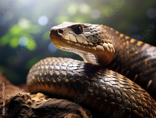 A fearless King Cobra, poised in a natural setting.