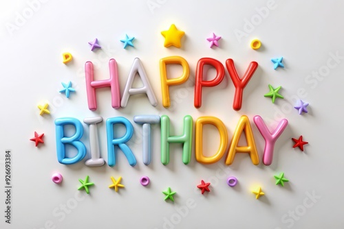 A festive birthday greeting with the words "Happy Birthday" spelled out in colorful letters surrounded by sparkling stars, symbolizing joy, celebration, wishes, and good times.