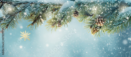 A Festive Christmas Tree Branch With a Glittering Star Ornament