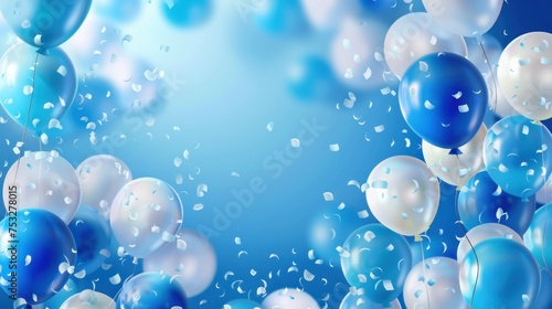 A festive party banner, set against a background of vibrant blue balloons, offers a captivating visual for any celebration