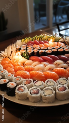 A Festive Sushi Platter With Candles Lit