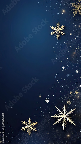 A festive winter backdrop with golden snowflakes against a dark blue gradient, embodying the holiday spirit. perfect for Christmas and New Year-themed designs. copy space