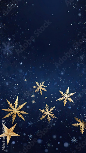 A festive winter scene with golden snowflakes against a starry night sky, conveying the magic of the holiday season. perfect for festive Christmas-themed designs. copy space
