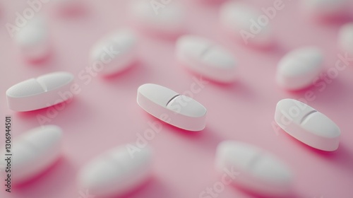 A few small white pills scattered across a pastel-colored background, soft and calming, ultra-detailed, 8k