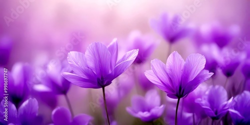 A field of delicate purple flowers in full bloom, with a soft, blurred background that enhances the focus on the vibrant blossoms