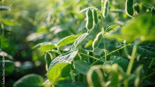 A field of green plants with a few yellow flowers. The plants are tall and leafy. The field is full of life and energy
