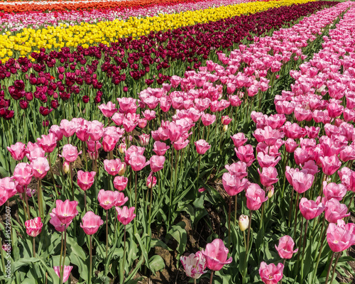 A field of red tulips country farm