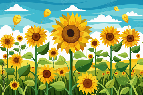 A Field of Sunflowers Under a Blue Sky with White Clouds