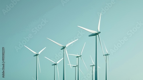 A field of wind turbines against a blue sky, representing clean energy and sustainability.