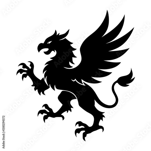 A fierce black silhouette of a griffin