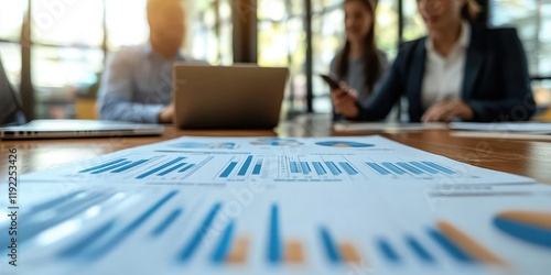 A financial advisor and a couple discussing their retirement plan, with charts, documents, and a laptop on the table in a modern office