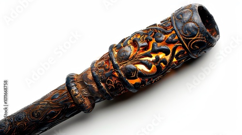 A fire torch with glowing embers, medieval theme, isolated on white background