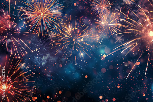 A fireworks display in the sky with a blue background
