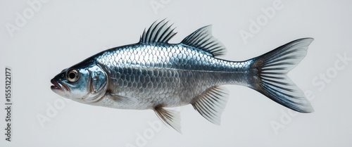 A fish with scales and fins, isolated on a white background.