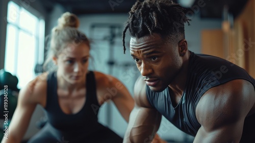 A fitness trainer conducting a fitness assessment with a client, measuring flexibility and strength.