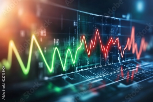 A flat 2D illustration of a fluctuating heartbeat line on a monitor, symbolizing changes in heart rate, drawn in vibrant green and red tones on a white canvas