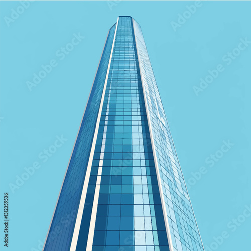 A flat 2D vector of a modern skyscraper with reflective glass facades.