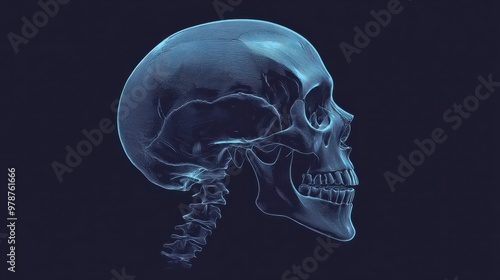 A flat X-ray icon showing a side view of the human skull, designed in dark blue tones.