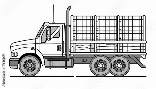 A flatbed truck with a metal cage is ideal for transporting bulky or loose items that need containment. It's useful in construction, agriculture, and other industries.